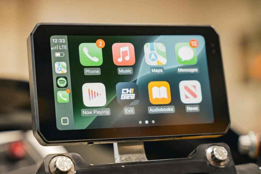 This is the meat of the device. It connects wirelessly to your phone (hidden away safely in your jacket or tank bag) and mirrors your navigation and music. Whether you're a Google Maps devotee or a Waze fanatic, it just works. It's really simple to connect, just like in your car.